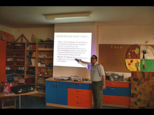 FM Christoph Fuß und OLM Franz Mürwald besuchten am 16.03.2011 die 3. Klasse Volksschule in Waldenstein. Sie hielten einen Vortrag über das richtige Verhalten und den Umgang mit Chemikalien im Haushalt die wir täglich nützen (Reinigungsmittel, Dünger, …). Die Kinder lernten die Gefahrensymbole auf den Verpackungen und deren Bedeutung kennen. Auch über die Telefonnummer der Vergiftungszentrale (01 / 406 43 43) wurde gesprochen und das richtige Verhalten beim Anrufen wurde geprobt. Zum Abschluss wurde der Notfallcheck bei bewusstlosen Personen erklärt und die Stabile Seitenlage geübt.