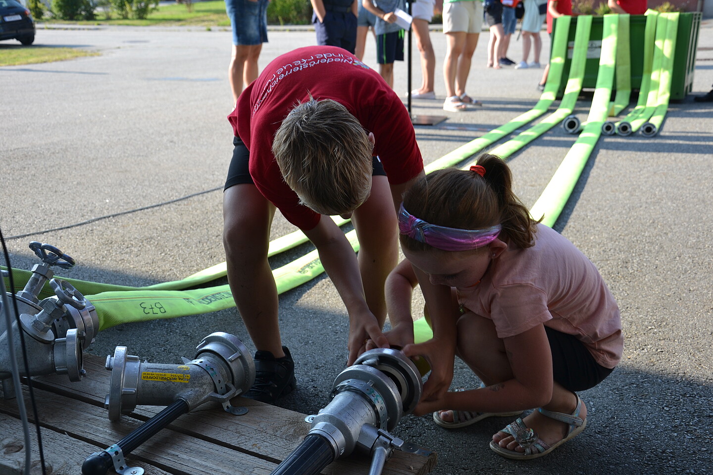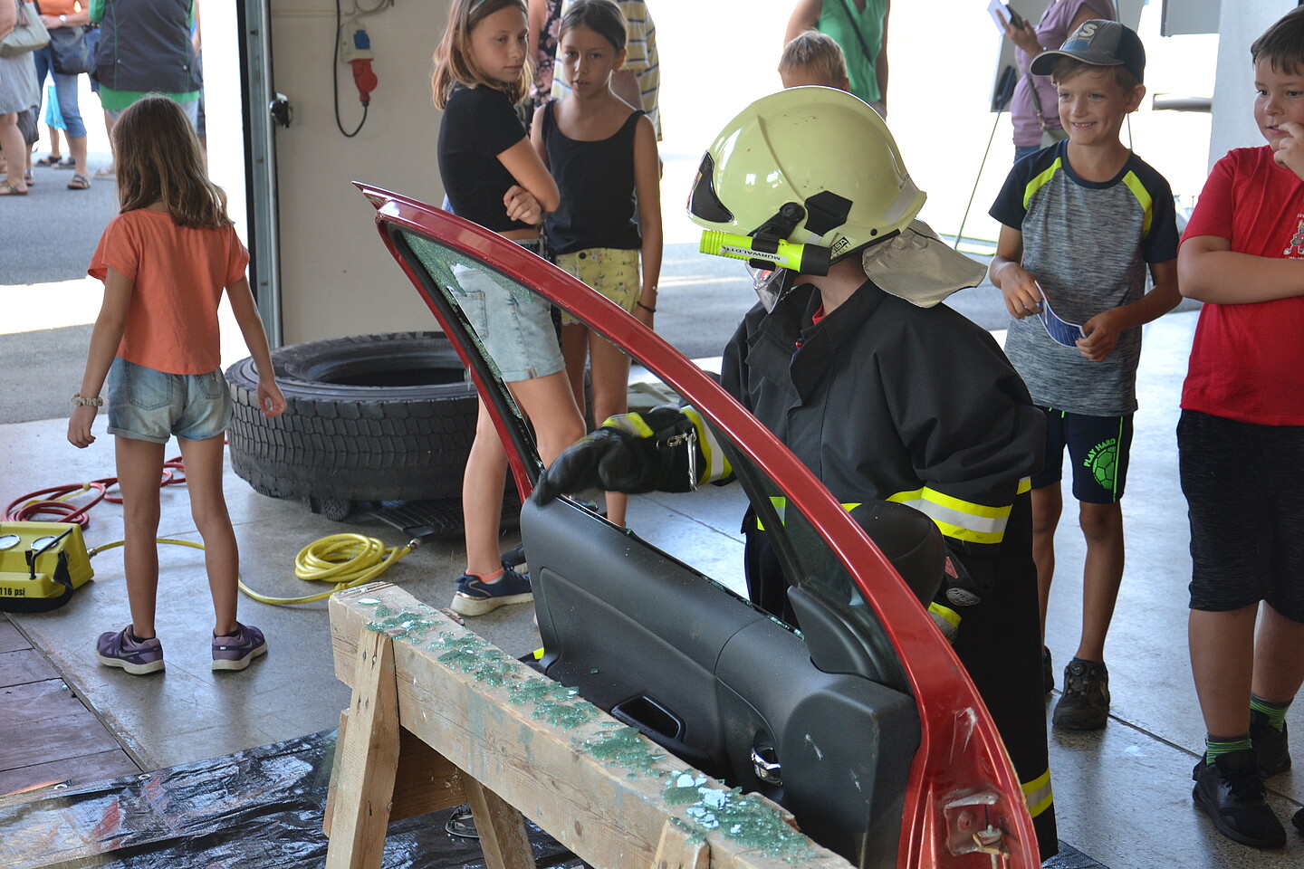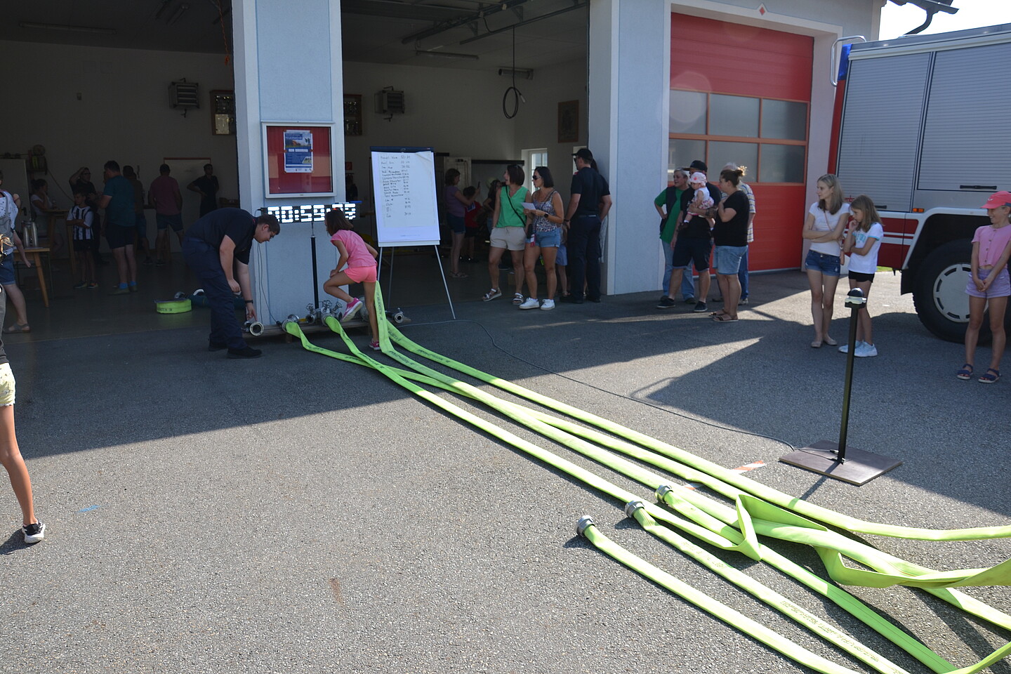 Sowohl den Kindern als auch den Erwachsenen wurde dabei ein Einblick in die Welt der Feuerwehr gegeben. Bei den verschiedensten Stationen wie z.B. Menschenrettung mit Hebekissen, Kupplungsspiel mit Zeitnehmung, Wasserwerfer und vieles mehr konnten Punkt für einen Sammelpass geholt werden. Als Belohnung für einen vollen Sammelpass gab es zur Abkühlung ein Eis.