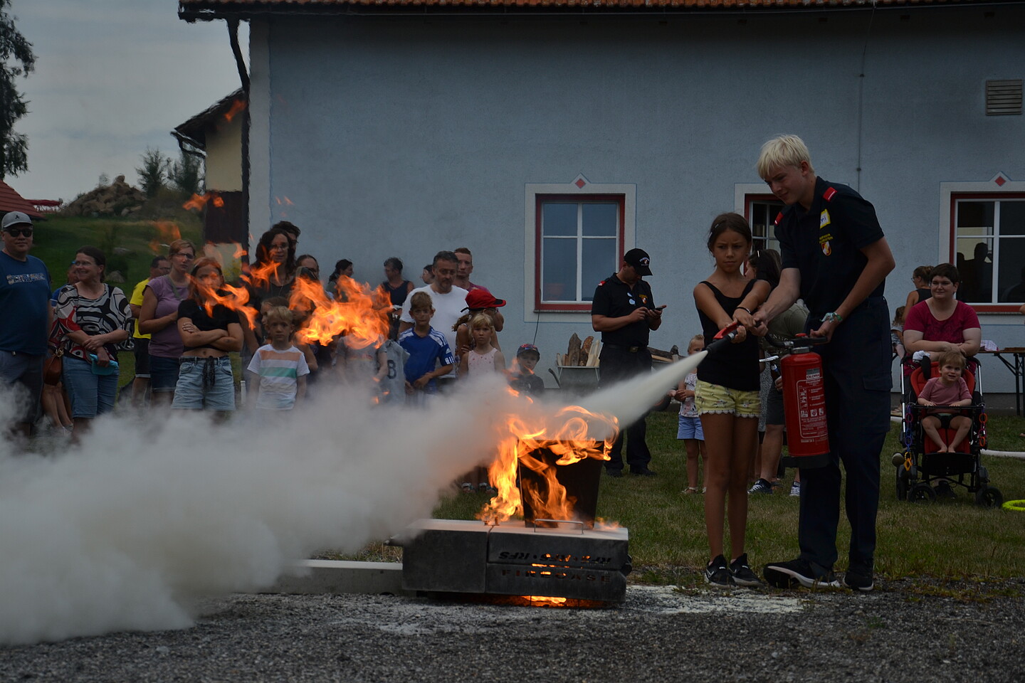 Ein Einblick in die Feuerwehrjugend konnte bei einer kurzen Vorstellung durch Jugendbetreuerin LM Lisa Wally gegeben werden. Mit einer Führung durch das Feuerwehrhaus konnte HBI Manuel Wurz der Bevölkerung die bereits getroffenen Maßnahmen für ein Blackout im Feuerwehrhaus näherbringen. Ein weiteres Highlight war sicherlich die Fettbrandvorführung und das anschließende Feurlöschertraining bei dem die Besucher die richtige Handhabung eines Handfeuerlöschers üben konnten.