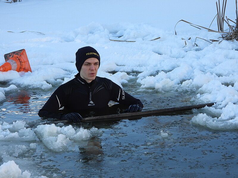 Ziel war es, die Rettung einer ins Eis eingebrochenen Person unter realistischen Bedingungen am Löschteich zu trainieren. Die tiefen Temperaturen boten ideale Voraussetzungen, um die Vorgehensweise und den Umgang mit der Ausrüstung zu üben.