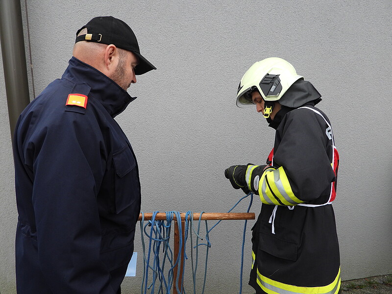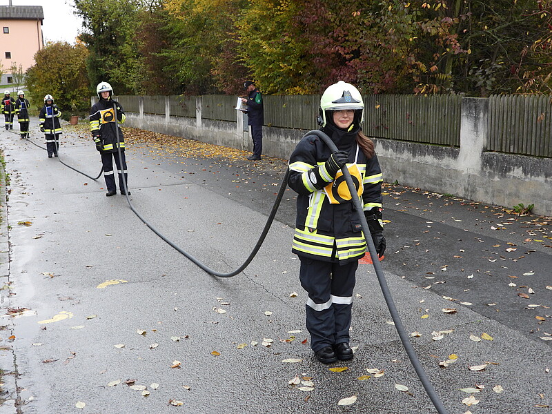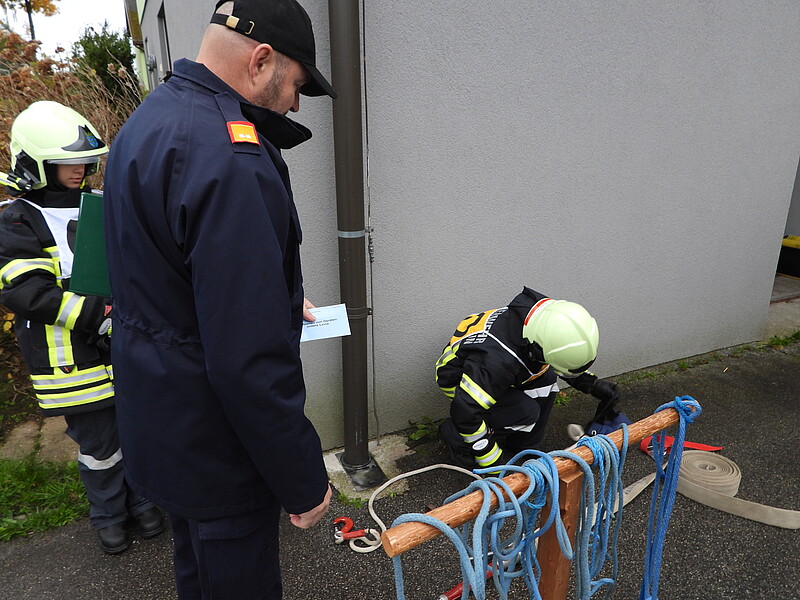 Die Ausbildungsprüfung festigt die Fähigkeiten der Mitglieder für den Löscheinsatz. Dabei wird die richtige Handhabung der erforderlichen Maßnahmen in den Vordergrund gestellt. Hier gilt es z. B. die Einsatzstelle abzusichern, sich mit umluftunabhängigen Atemschutz auszurüsten, die Schnellangriffseinrichtung zu verlängern, die Wasserversorgung herzustellen und einen Innenangriff zu simulieren. Zusätzlich müssen bei einer Wissensüberprüfung sämtliche Gerätschaften des Einsatzfahrzeuges bei geschlossenen Türen punktgenau lokalisiert werden, Erste Hilfe Maßnahmen durchgeführt werden, Knoten ausgeführt werden und Fragen zu Gefahren an der Einsatzstelle beantwortet werden.
