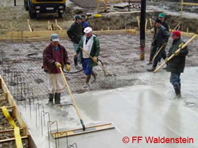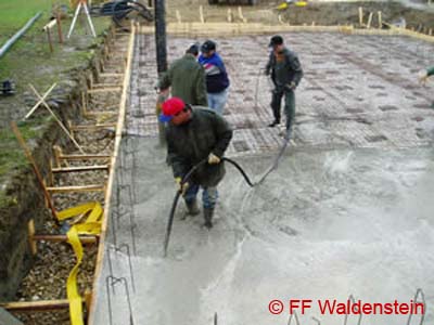 Anfang April wurde mit dem Ausbetonieren des Kellers begonnen.