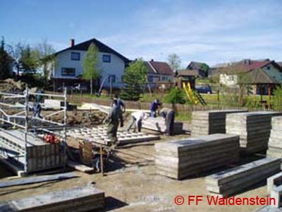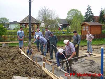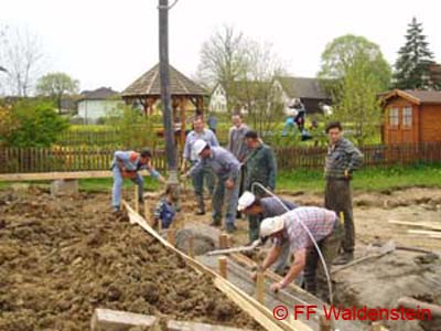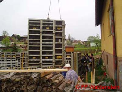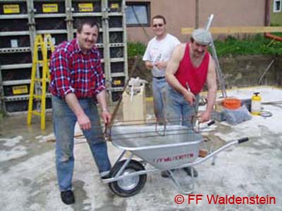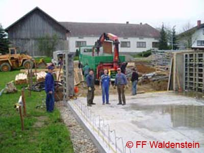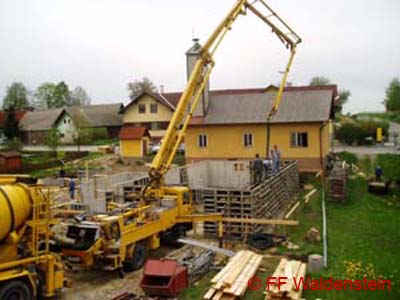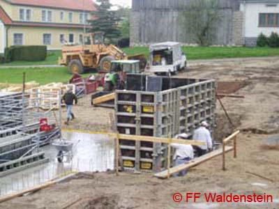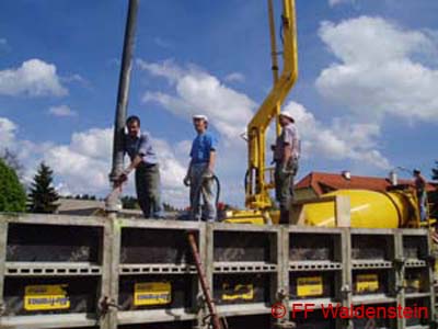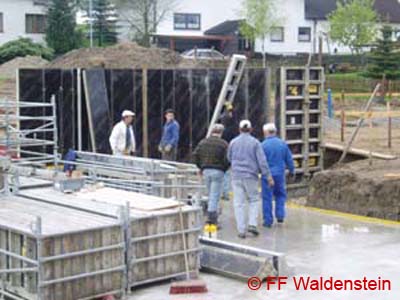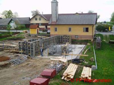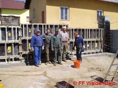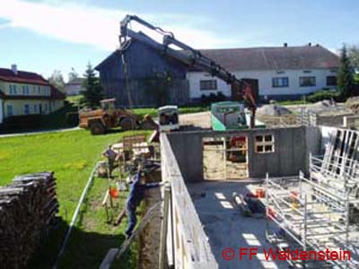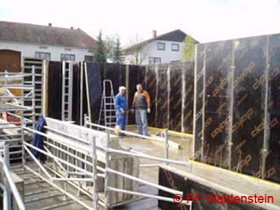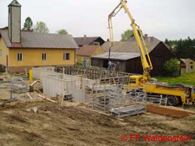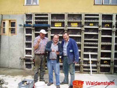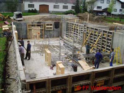Die Kellerräumlichkeiten sind nun bereits sehr gut erkennbar. Die Betonierungsarbeiten schreiten zügig voran, wie man auf den Bildern mit den Bauarbeitern erkennen kann.