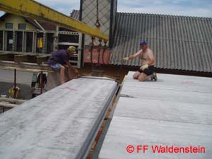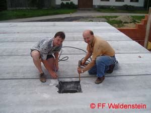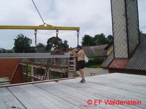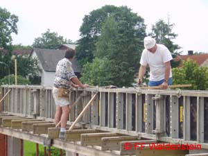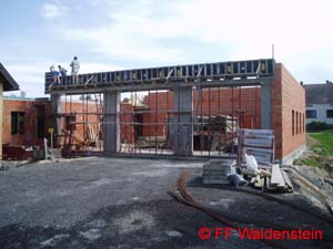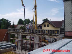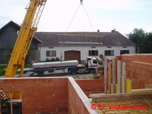 In kürzester Zeit konnten schon wieder die Mauern abgeglichen werden. Die Decke für das Gebäude wurde von der Firma Oberndorfer geliefert.