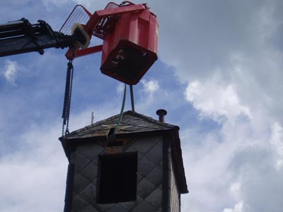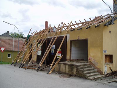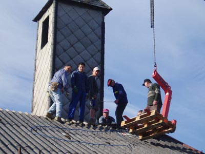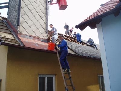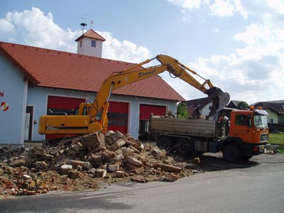 An Zahlreichen Wochenenden wurde zuerst das alte Feuerwehrhaus ausgeräumt. Nach dem Abdecken des Daches musste der Schlauchturm weichen, danach wurde der Dachstuhl entfernt. Diese Arbeiten wären ohne den Kran der Firma Bernhard Diesner unmöglich gewesen.