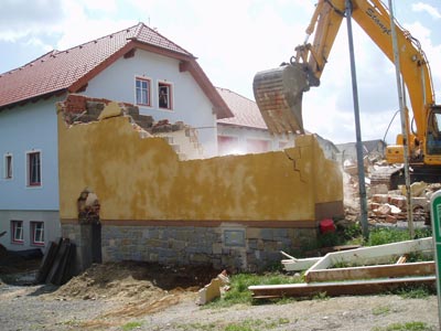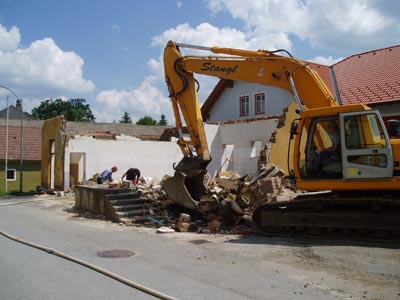 In den Darauffolgenden Tagen rückte die Firma Stangl mit einem großen Bagger an, welche die Mauern dem Erdboden gleich machte. Ebenfalls wurde von ihr der Vorplatz planiert.