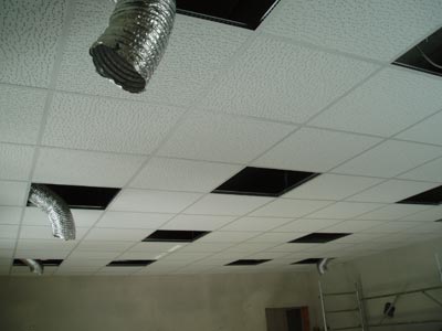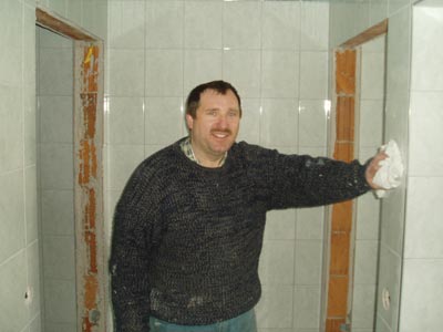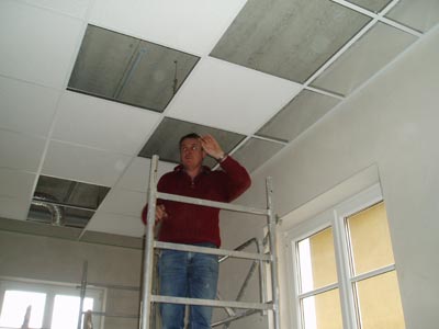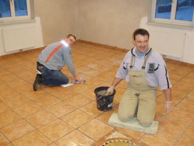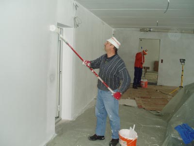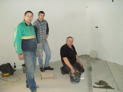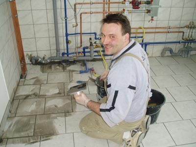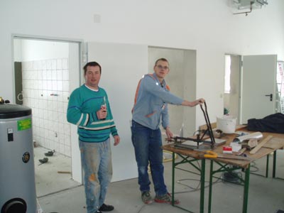Nachdem der Estrich fertig war, mussten die Fliesenleger ran ans Werk. Da fast alle Raume gefliest wurden, war dies einige Arbeit. Darauf folgten die Decken im gesamten Feuerwehrhaus. Zuletzt waren die Maler gefragt.
