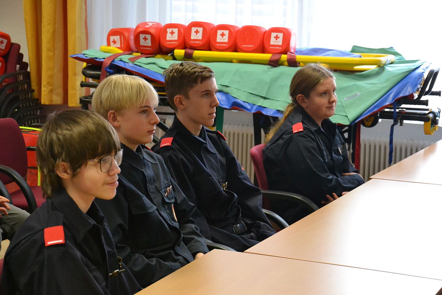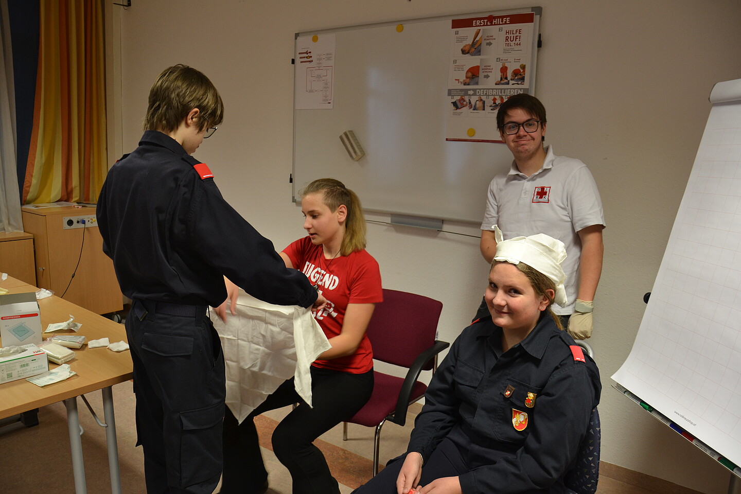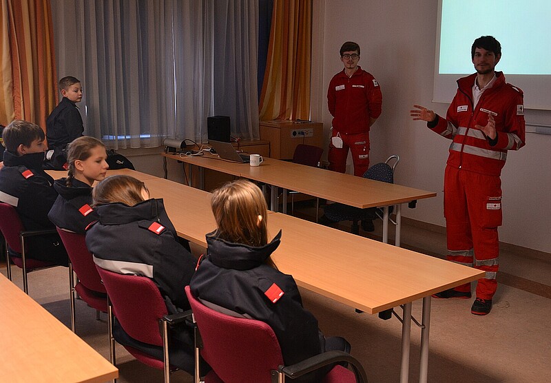 In einem kurzen Vortrag wurden die Tätigkeiten des Rettungsdienstes nähergebracht. Anschließend wurden gemeinsam mit der Jugendgruppe des Roten Kreuzes Erste Hilfe Maßnahmen beübt. Zum Abschluss durften noch die Rettungsfahrzeuge besichtigt werden und auch diverse Gerätschaften ausprobiert werden.